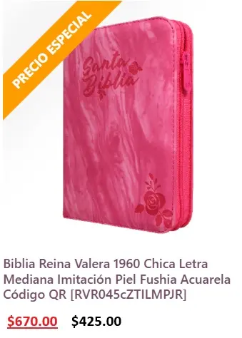 Biblia Reina Valera 1960 Mediana Letra Grande Imitación Piel Beige/Rojo Código QR